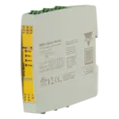 Safety Edge module according to EN ISO 13849-1, Performance Level d (safety category 3), 24 VAC 50-60Hz, 24VDC, 2 NO safety outputs, Automatic/Manual start, mounting on DIN-rail.