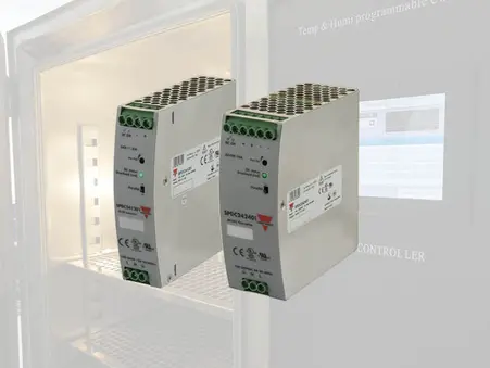 Les alimentations à découpage jouent un rôle essentiel dans l'alimentation de la plupart des composants critiques du panneau électrique de tout équipement à semi-conducteurs. La série SPDC d'alimentations montées sur rail DIN offre un certain nombre de caractéristiques uniques telles qu'un design ultra-mince, un PFC intégré et des rendements allant jusqu'à 96%. Les alimentations à découpage peuvent fonctionner sur une large gamme de tensions d'entrée, tout en maintenant une tension continue de sortie très stable afin de s'assurer que tous les composants critiques, tels que les PLC et les HMI, sont alimentés en toute sécurité.