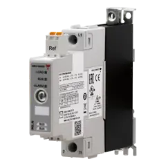 1-pole DIN-rail mount SSR, Proportional control switching via bus interface (NRG), Real-time data (A, V, W, Hz, kWh, Hrs) and monitoring, Operating voltage (Ue): 42 - 660 Vac (1200 Vp), Rated current (Ie): 25 Aac, Built-in overvoltage protectionSpesifikasjoner